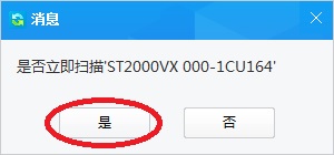 4、弹出对话框,提示“是否扫描‘ST2000VX 000-1CU164'”,点“是”,软件立即扫描我们选择的硬盘数据。