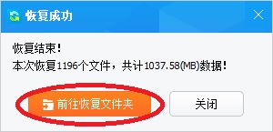 8、恢复完成,弹出提示信息。点“前往恢复文件夹”,可以到恢复文件夹看刚才恢复的文件。