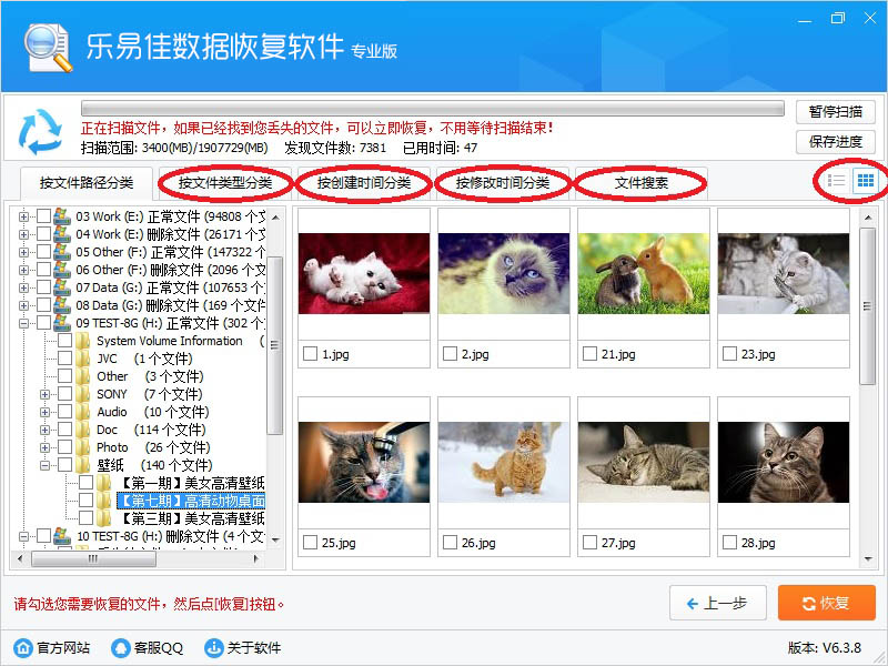 我们软件拥有领先的边扫描边显示功能,一般都不需要等扫描结束,找到您的文件就可以立即恢复。
