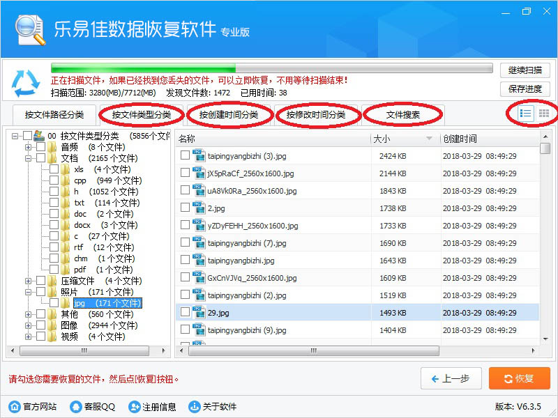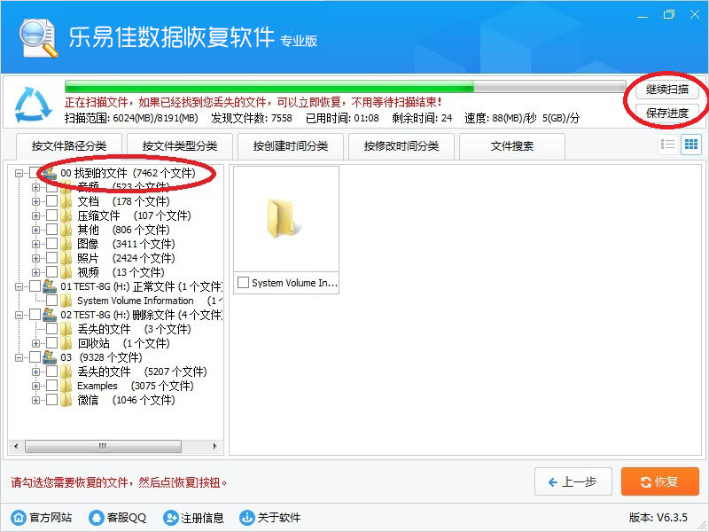 我们软件拥有领先的边扫描边显示功能,一般都不需要等扫描结束,找到您的文件就可以立即恢复。