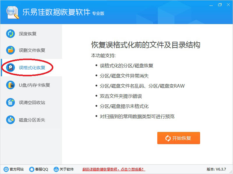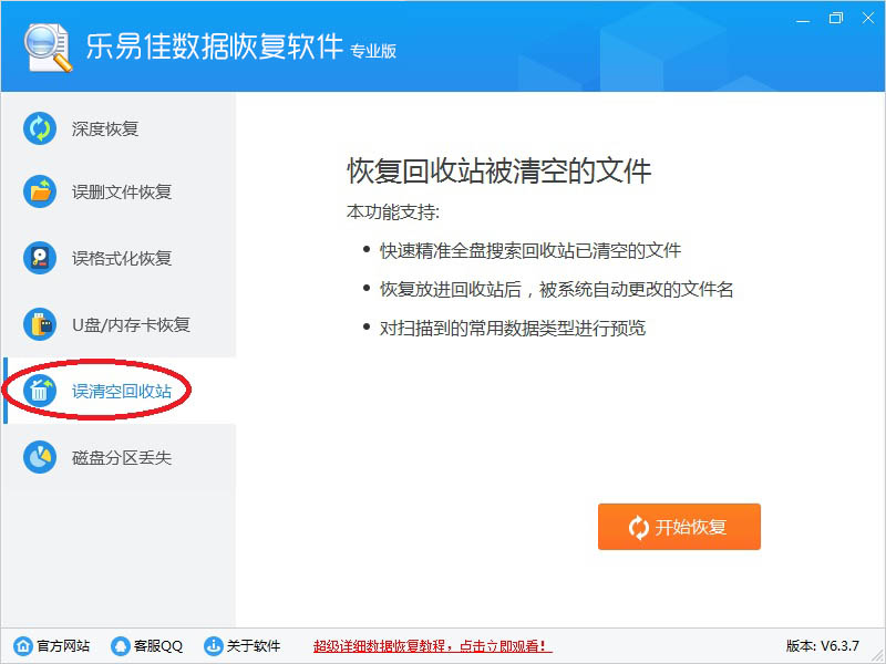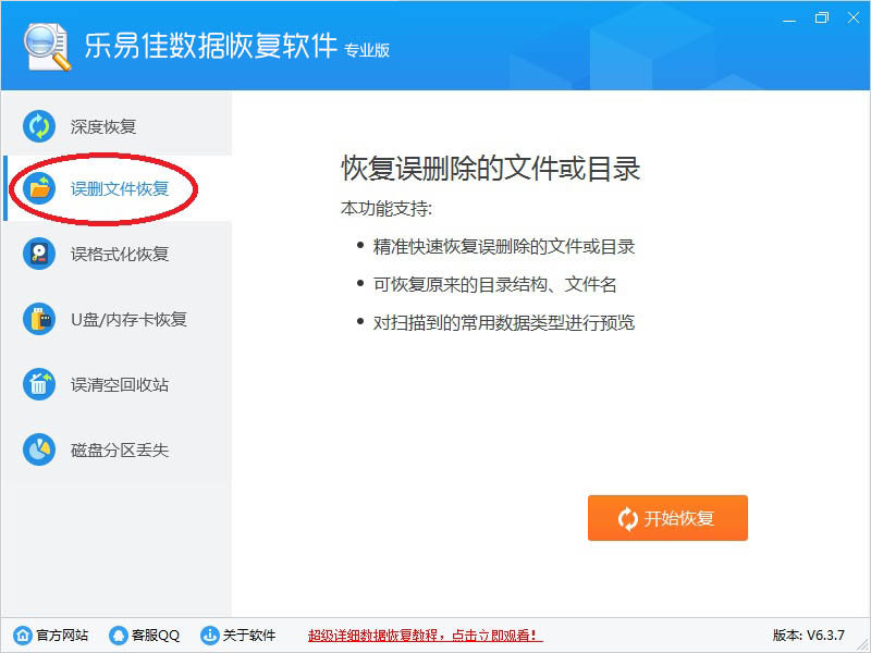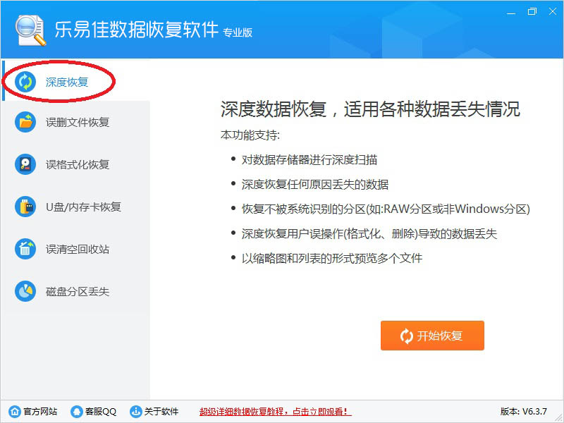 1、乐易佳数据恢复软件有:深度恢复、误删文件恢复、误格式化恢复、U盘/内存卡恢复、误清空回收站、磁盘分区丢失等六大主要功能。