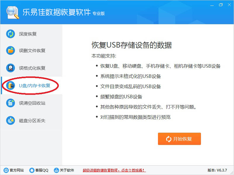 4、U盘/内存卡恢复