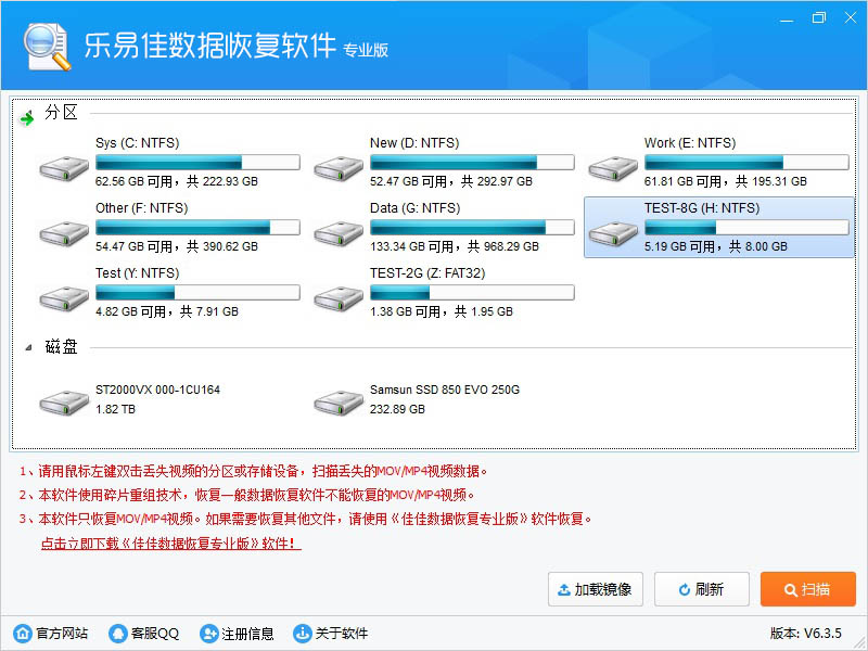 如果视频已经拷贝到硬盘、移动硬盘上面了,一般不会有碎片情况,使用我们乐易佳数据恢复专业版就可以恢复了。