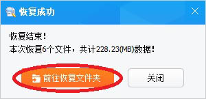 14、恢复完成,弹出提示信息。点击“前往恢复文件夹”,可以到恢复文件夹看刚才恢复的文件。