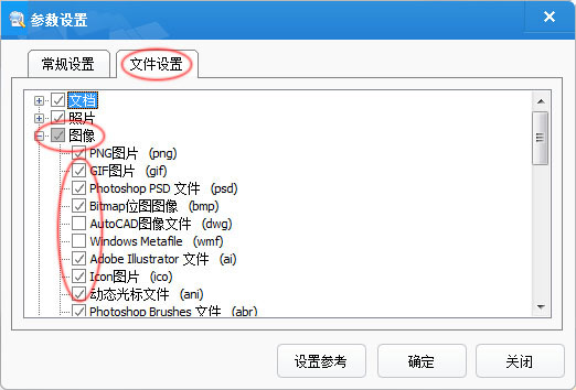 您可以根据您的恢复的需要勾选对应的文件格式。