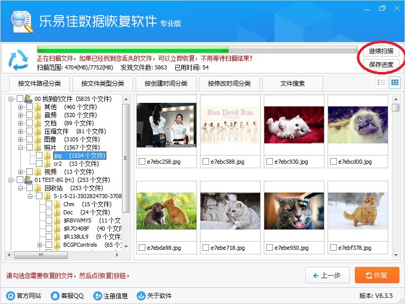 我们软件拥有领先的边扫描边显示功能,如果不是数据损坏严重,都不需要等扫描结束,找到删除的文件就可以立即恢复。