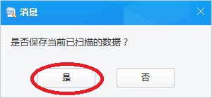 13、扫完结束,弹出提示“是否保存当前已扫描的数据”,点“是”,方便下次复用扫描结果。