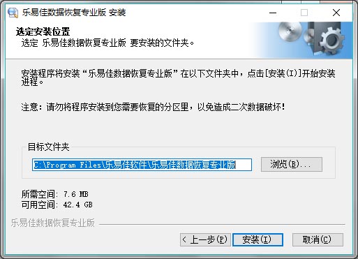 6、进入安装程序目录选择界面,请勿将程序安装到您有数据需要恢复的分区里。