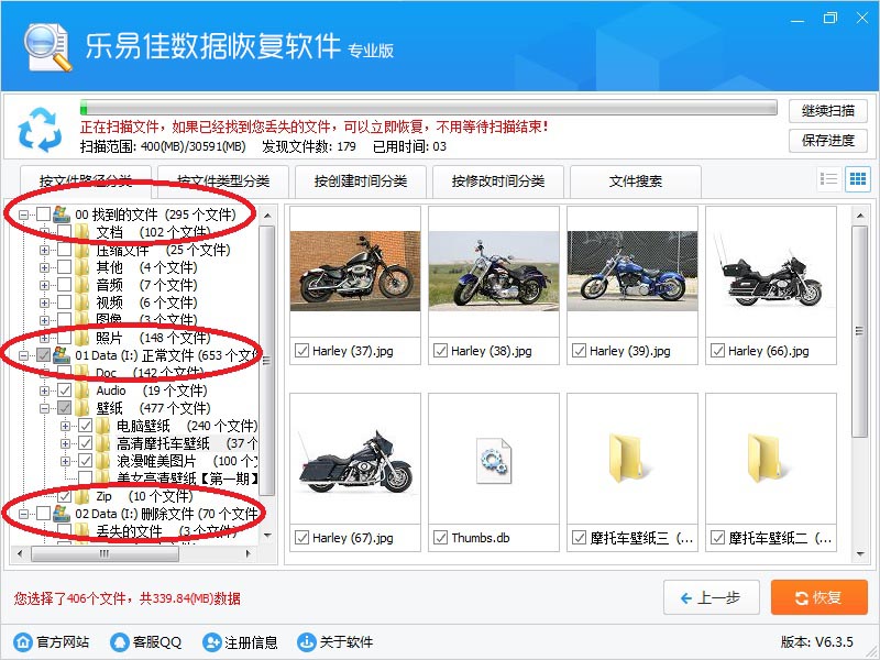 我们软件拥有领先的边扫描边显示功能,一般都不需要等扫描结束,找到您的文件就可以立即恢复。