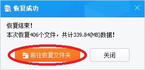 8、恢复完成,弹出提示信息。点“前往恢复文件夹”,可以到恢复文件夹看刚才恢复的文件。
