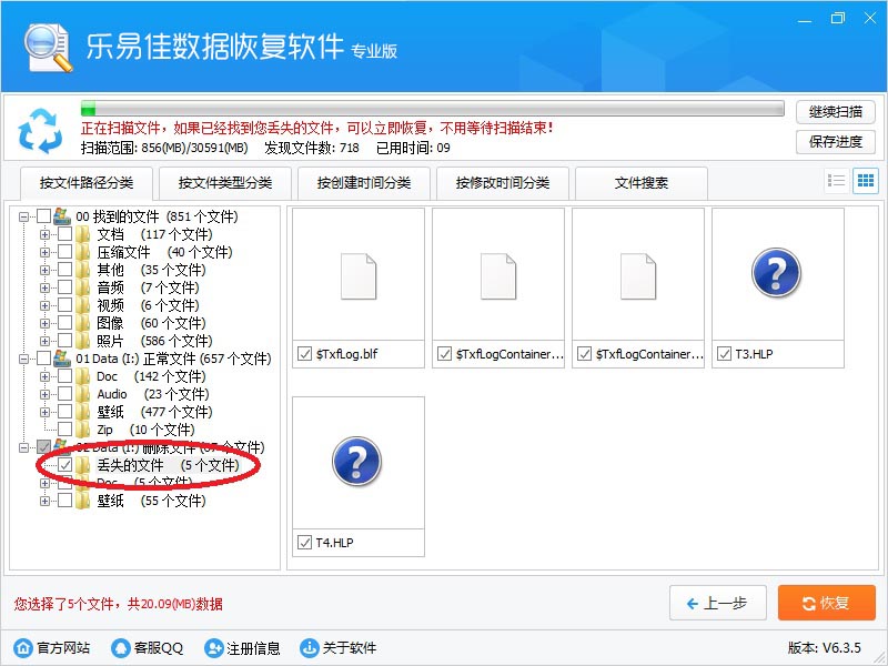 10、如果在原始目录里没有找到您的文件,请在“丢失的文件”目录里面找。