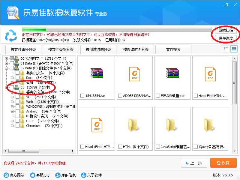 点击“保存进度”按钮,保存当前扫描到的数据,方便下次继续扫描。